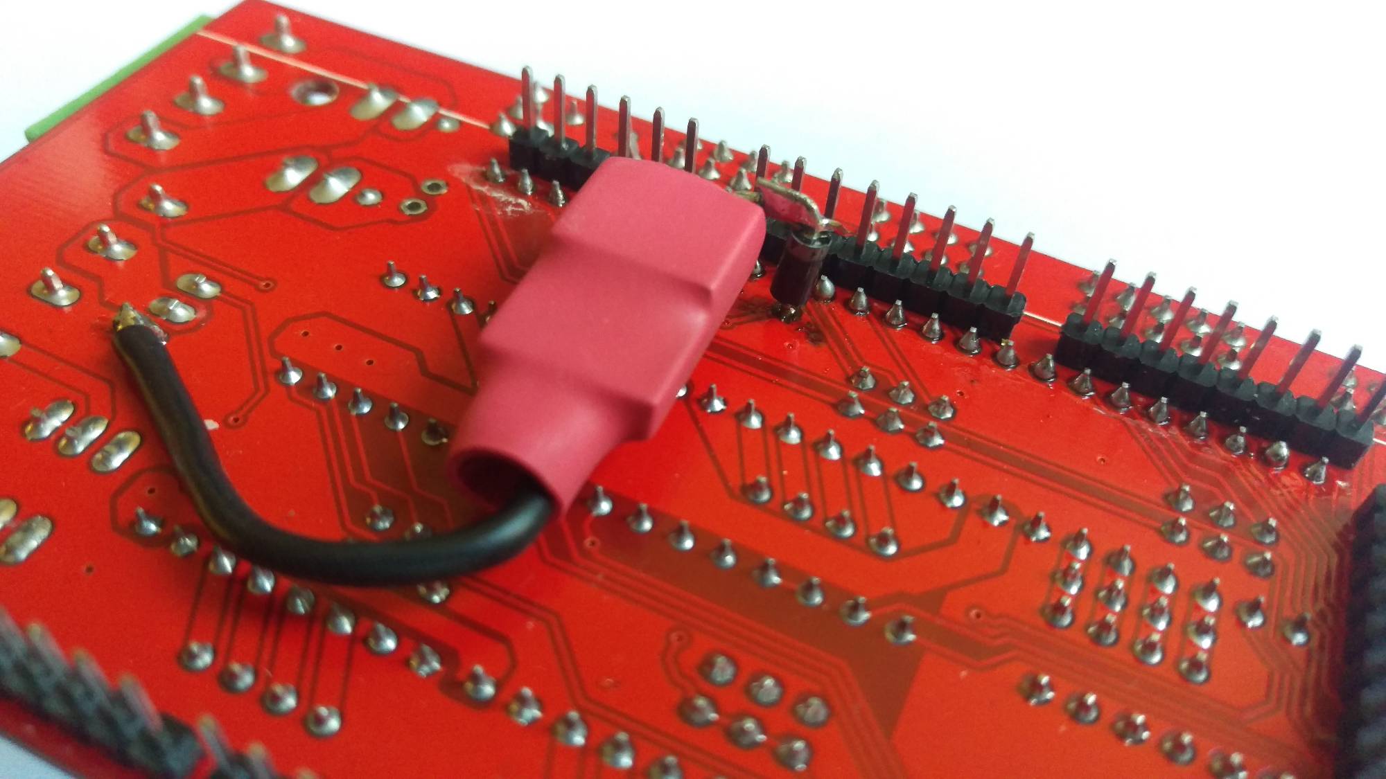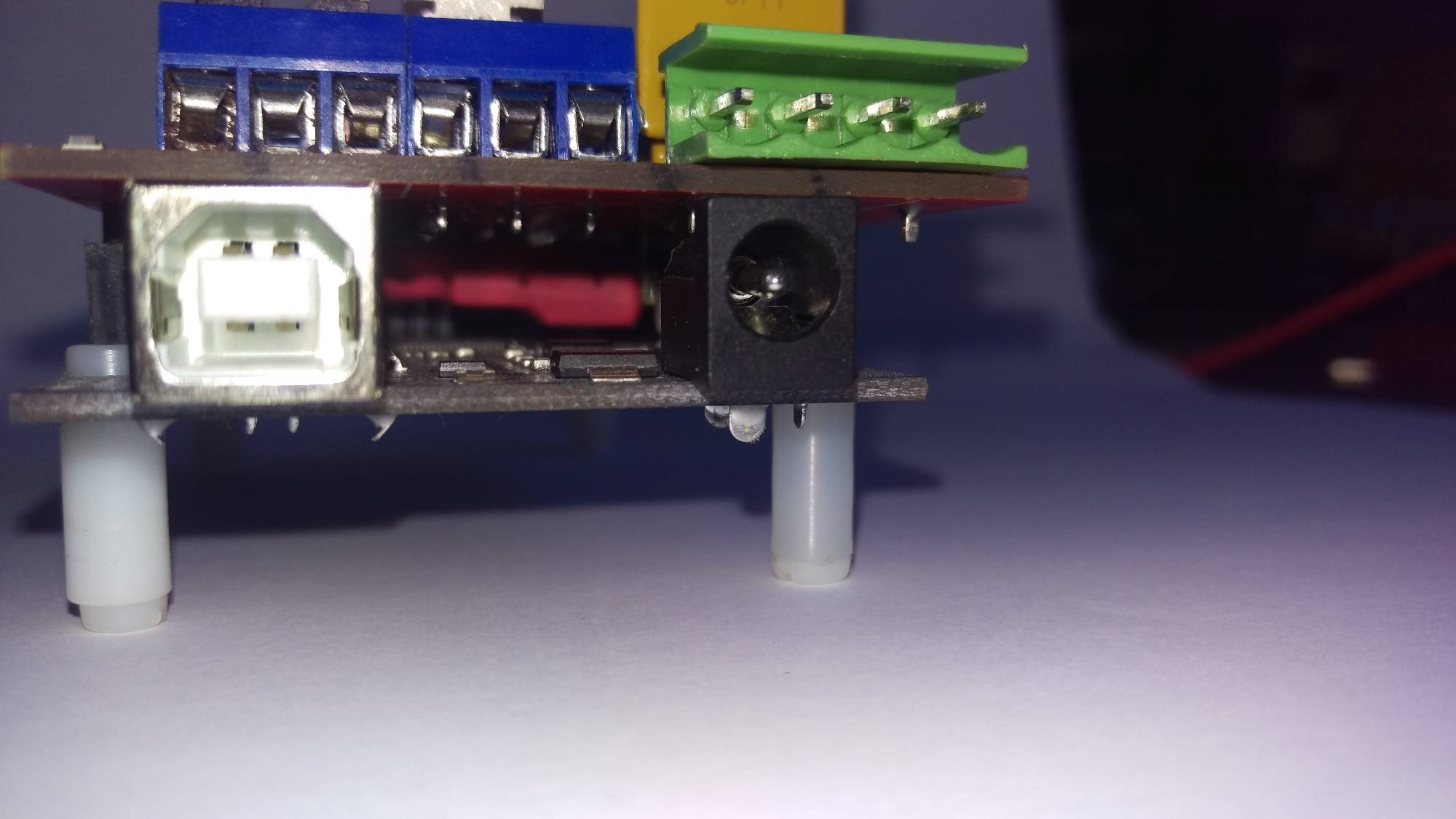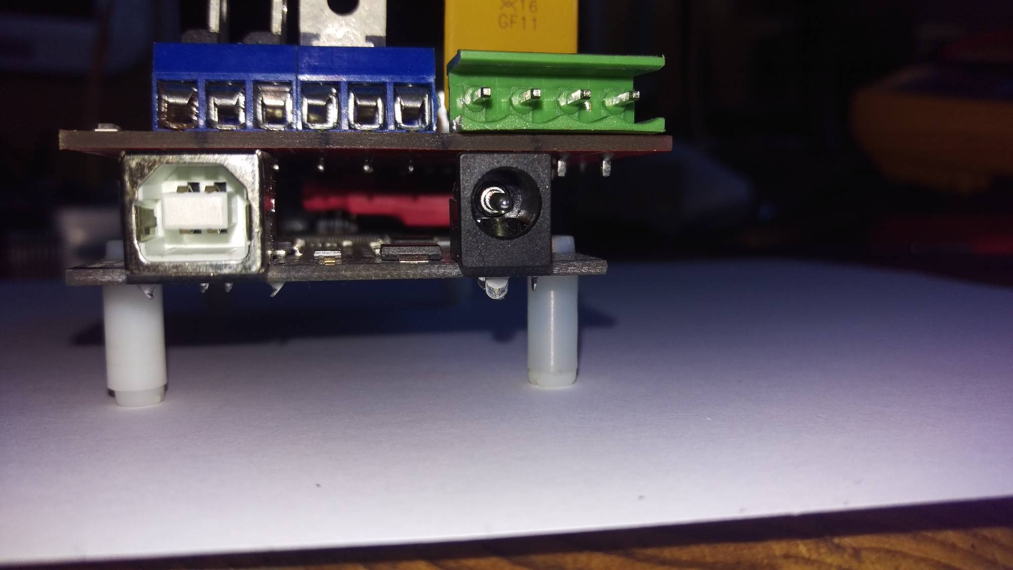 After this I was forced to use a cheaper version of a Ramps 1.4 and an Arduino Mega 2560 board. With this setup and using the original Velleman power adapter I blew up my Arduino Mega board!!! The power adapter of the Velleman is like a laptop power supply which has a 15V/6.5A DC output. How...! According the specs of an Arduino Mega board the maximum input voltage Vin=20V.